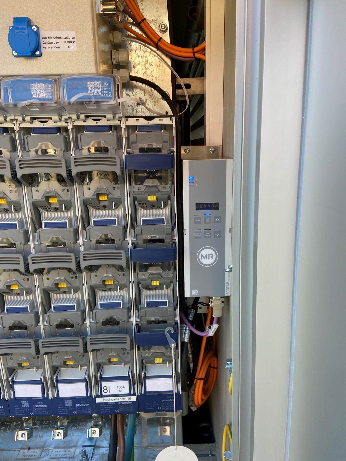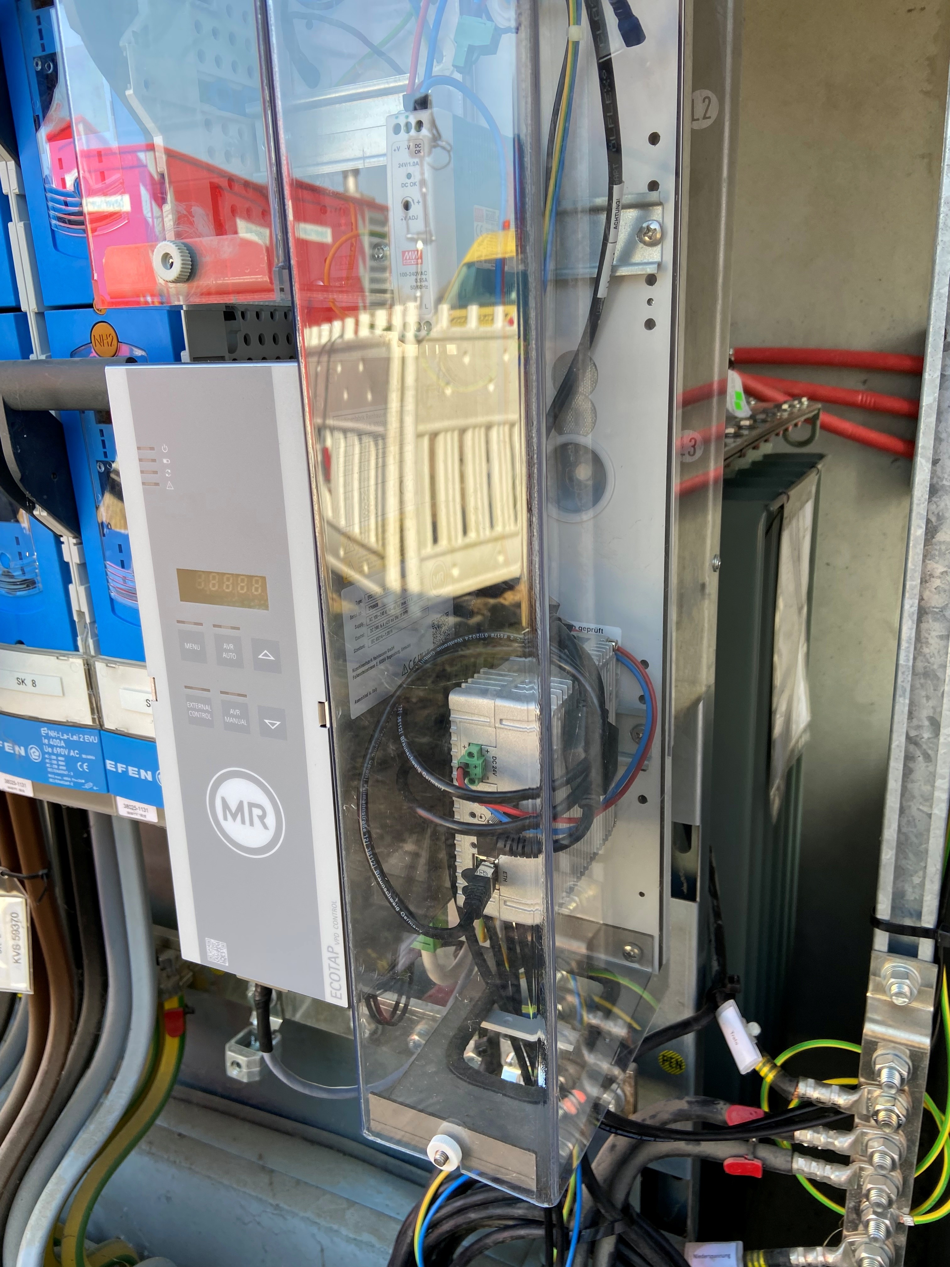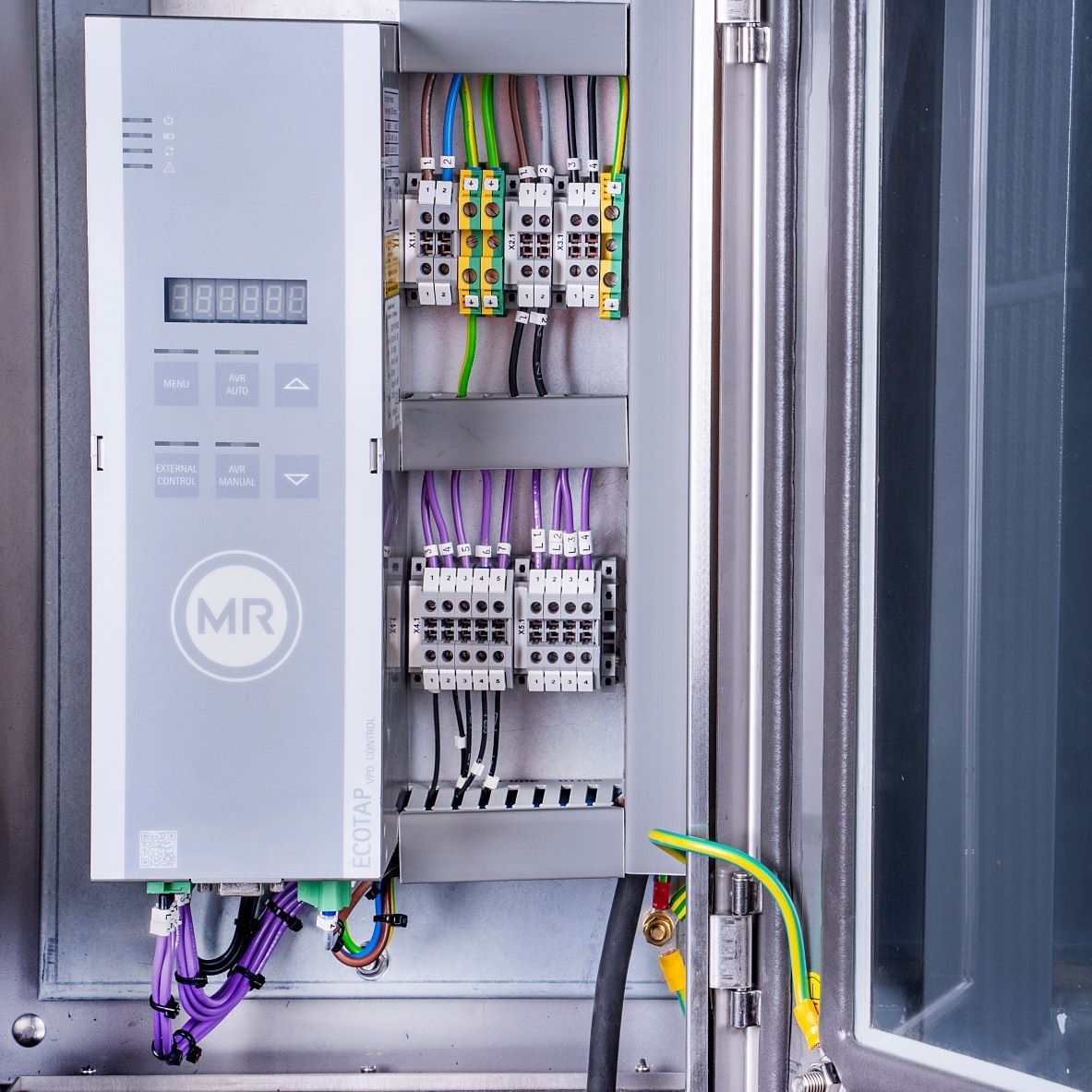 The ECOTAP® VPD® Control measures the voltage on the LV side and controls the ECOTAP® VPD® on-load tap-changer by actuating the motor drive. Intuitive operating and display elements support efficient on-site operation. For seamless integration into specific network environments, the unit includes a MODBUS RTU interface.
